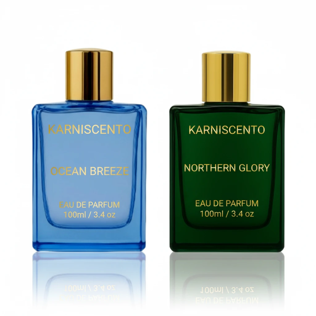 Breathe in the refreshing energy of Ocean Breeze and the tranquil sophistication of Northern Glory in this signature duo. Ocean Breeze opens with vibrant bergamot and mandarin, uplifting like a fresh sea breeze, while aromatic rosemary, pink peppercorn, and soft fruity notes evoke the natural rhythm of waves. A warm base of musk and woody accords grounds the scent, creating a smooth, confidently modern fragrance.