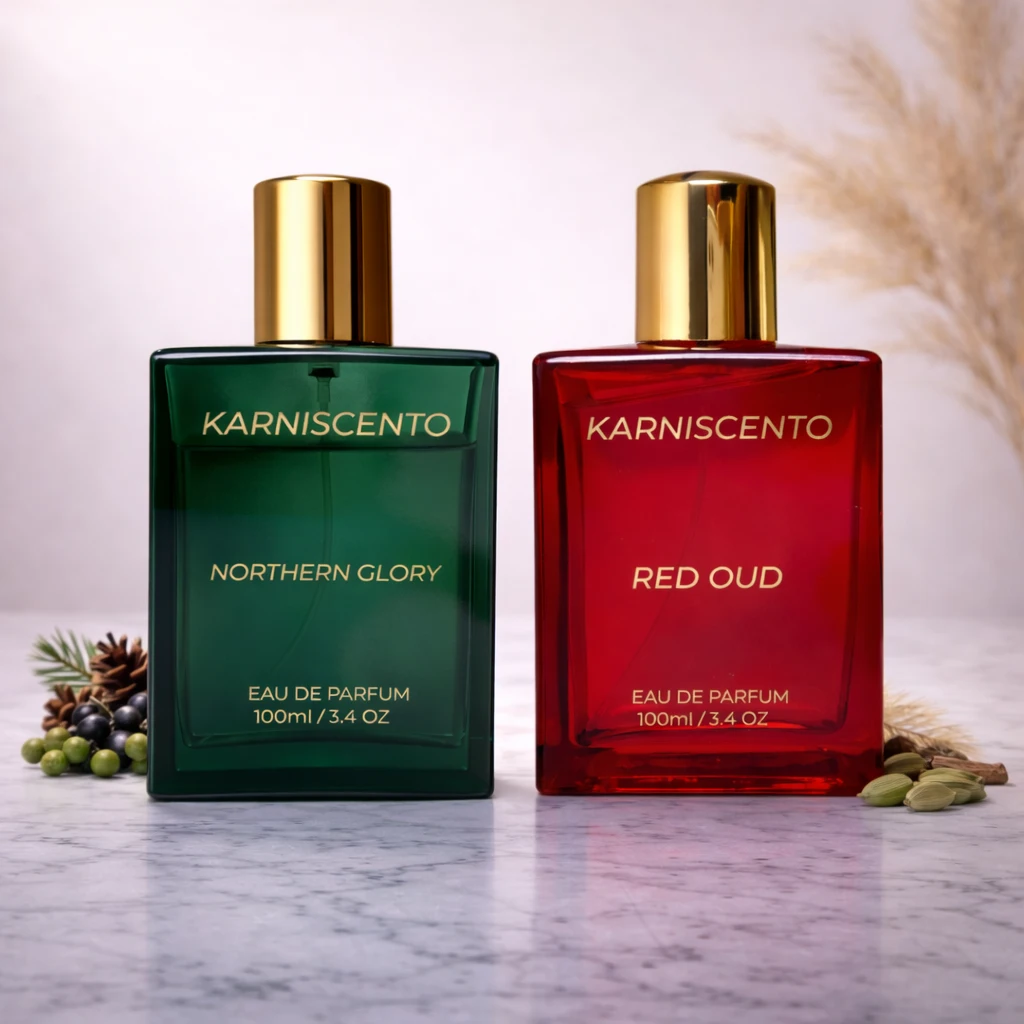 Step into the world of Karniscento Red Oud × Northern Glory, where bold passion meets serene elegance. Red Oud opens with a luminous burst of lemon and orange, bright and invigorating, like the first light of dawn cutting through a quiet city. Its heart unfolds with cashmeran, amber, and lonone, wrapping you in a velvety warmth that exudes depth, elegance, and subtle sensuality. The dry-down of dry musk and precious woods lingers softly, leaving a commanding yet refined presence.